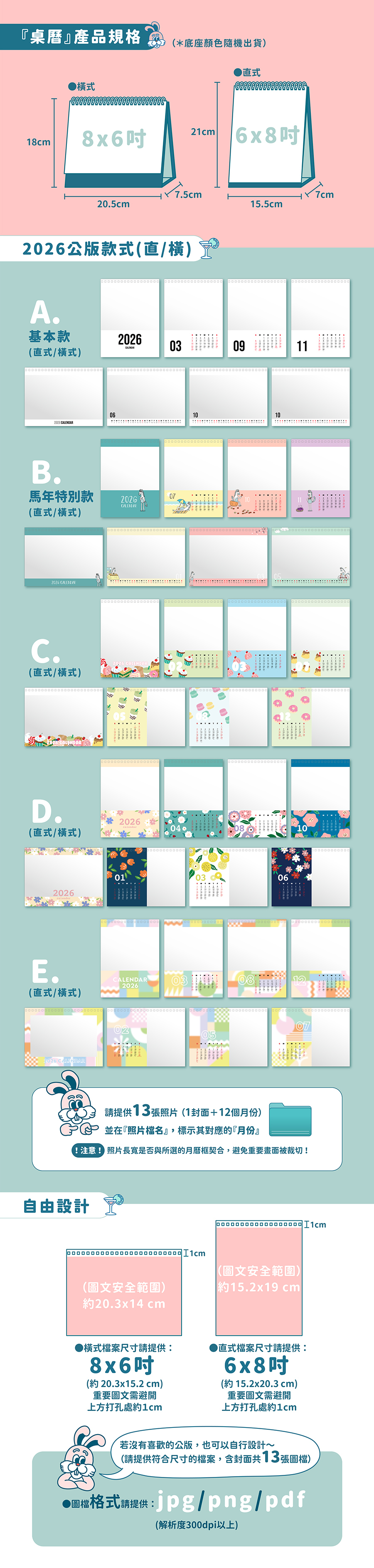 多款桌曆模板可套用,只需上傳照片超輕鬆!